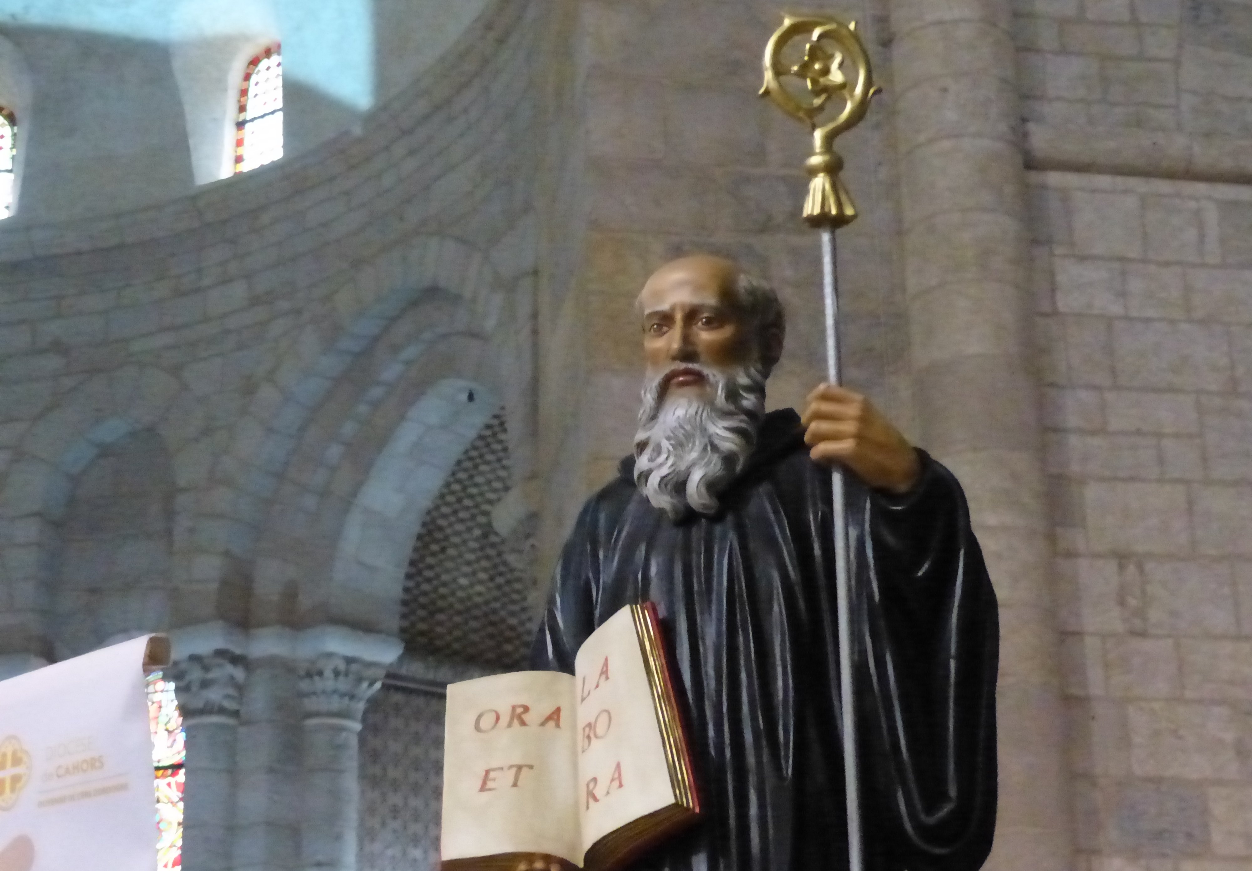 Au cours des siècles, la sagesse de vie contenue dans règle de saint Benoît a inspiré de façon très profonde la culture et le mode de vie sociale dans toute l’Europe. En effet, au Moyen Âge, les monastères, très nombreux et présents dans presque tous les territoires entretenaient d’étroits contacts avec les populations alentour et contribuaient à répondre à de nombreux besoins : écoles, bibliothèques et parfois aussi soins médicaux ou autres aides sociales… Paul VI, en 1964, a ainsi désigné saint Benoît comme un des saints patrons de l’Europe. Aujourd’hui encore, lorsqu’on parle de bientraitance, de respect de chacun, de gestion des conflits et de justesse dans les relations avec l’autorité, le recours à la règle bénédictine est souvent un guide pertinent, même pour ceux qui ne sont pas moines —en faisant, bien sûr, les transpositions nécessaires. Je vous encourage, vous tous, les paroissiens de Saint-Benoît du Haut-Quercy, à être spécialement les témoins de cette richesse humaine et spirituelle pour vous-mêmes et dans le Diocèse !