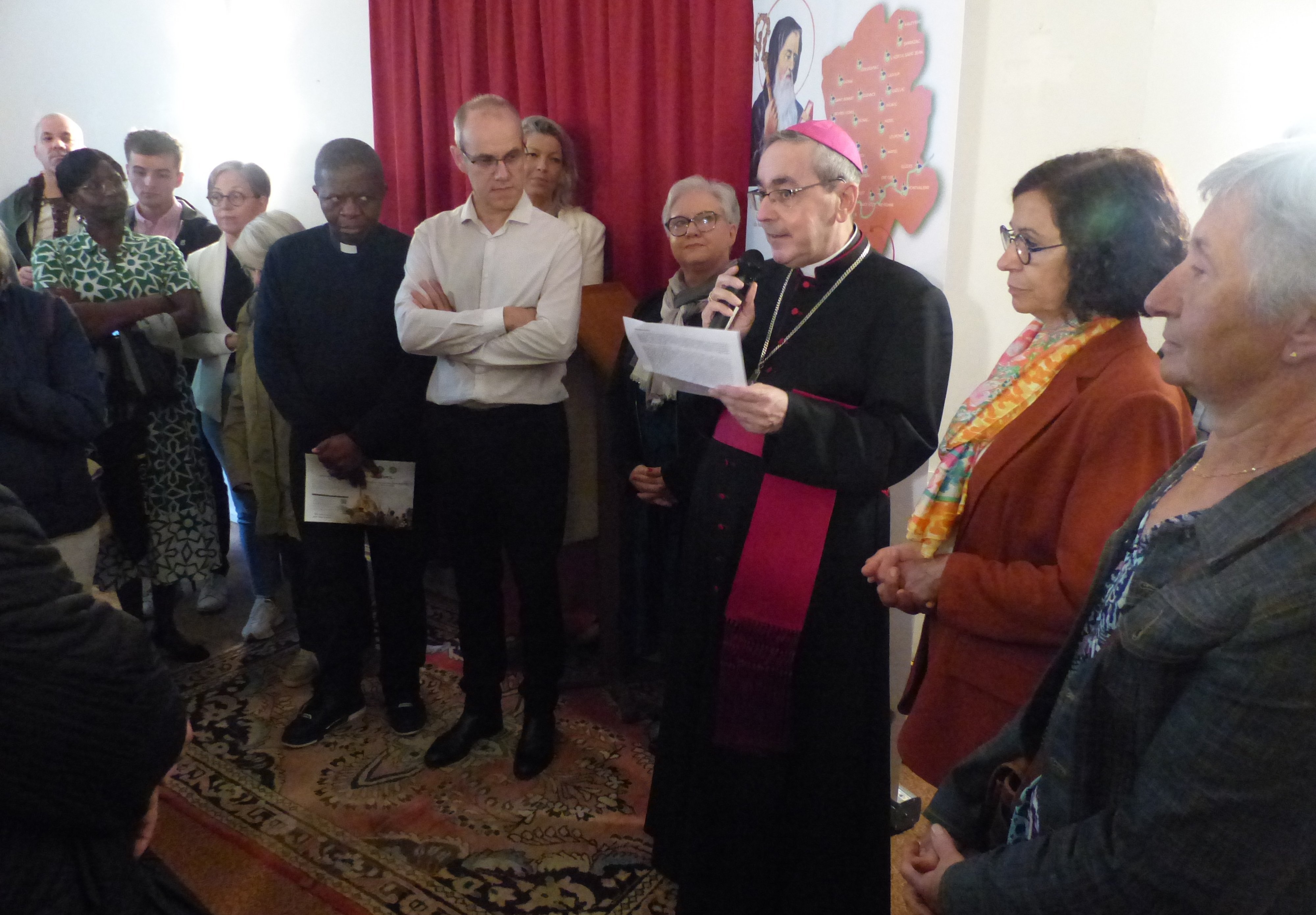 L’annonce est aujourd’hui devenue d’autant plus urgente que beaucoup de nos contemporains ne connaissent rien —ou seulement quelques caricatures— de la Bonne Nouvelle de Jésus. Le nombre d’enfants catéchisés est réduit, mais une forte demande se manifeste, en particulier venant de jeunes adultes, pour connaître la foi chrétienne. Et un certain nombre demandent le baptême ou d’autres sacrements. Le service des pauvres s’accomplit aujourd’hui en France en lien avec les services sociaux et divers acteurs, associatifs ou professionnels du soin, de l’aide sociale ou psychologique, ce qui n’empêche pas que les chrétiens y jouent un rôle irremplaçable. Je pense en particulier à la visite aux malades et l’écoute de leurs besoins spirituels, à l’accueil attentif des personnes en difficulté sociale dans nos groupes et dans nos assemblées où elles peuvent trouver une place et parfois une mise en lien avec les organismes pouvant les accompagner, mais aussi avec nos associations confessionnelles propres qui œuvrent au niveau local ou international. La liturgie, enfin, est l’aspect le plus visible de notre mission car les cloches sonnent, les orgues retentissent, les chants s’élèvent vers Dieu, des groupes parfois nombreux de fidèles se réunissent et repartent pleins d’espérance. La célébration d’aujourd’hui en est un bel exemple. Nous ne venons pas à la messe pour nous-mêmes seulement, mais bien pour porter dans la prière toute la vie de nos villages et de nos quartiers, afin que Jésus sanctifie tout ce qu’il y a de bon et d’habité par l’amour dans le monde qui nous entoure.