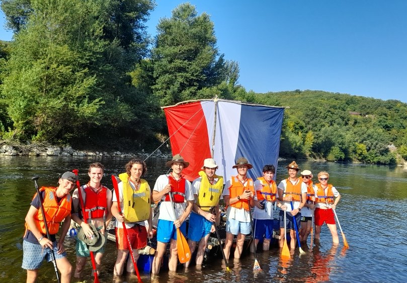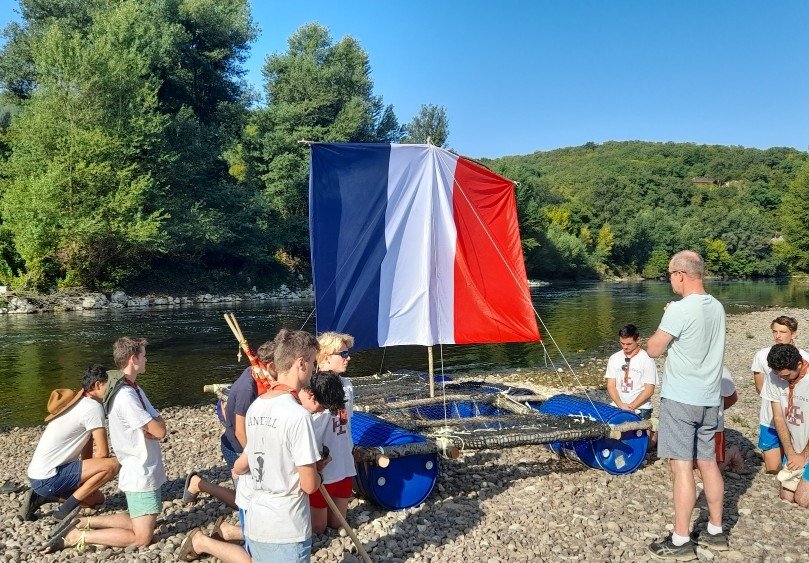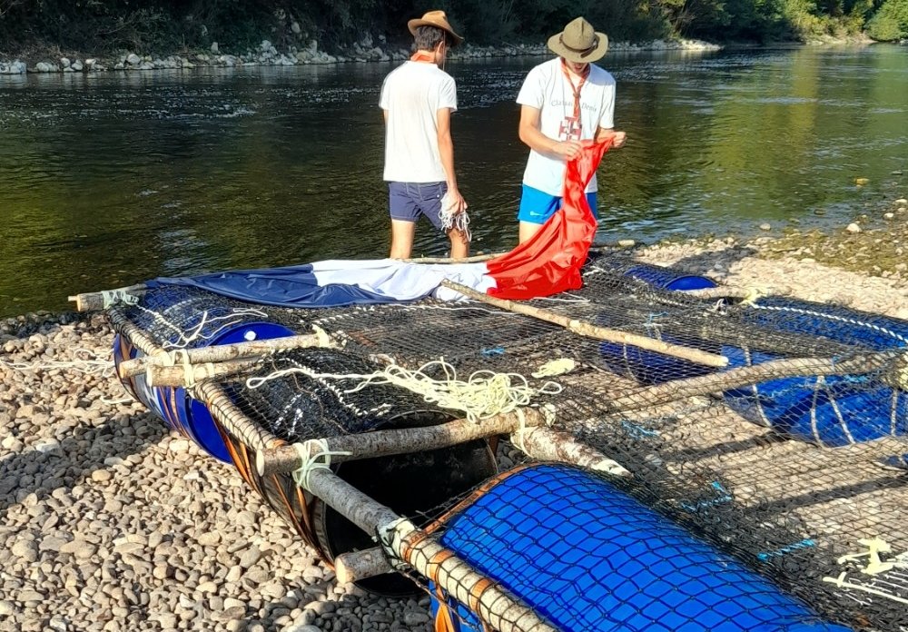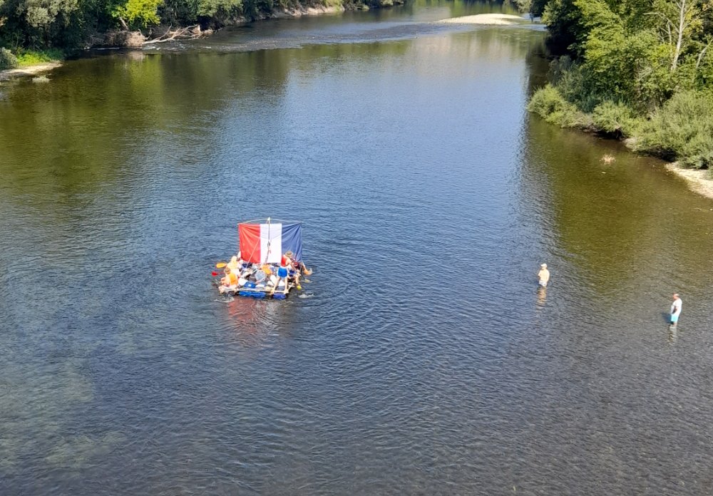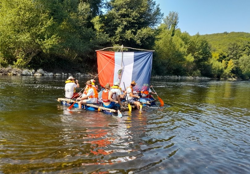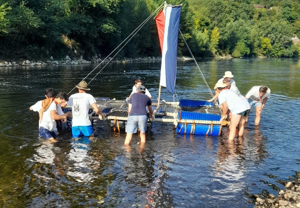 Puis à l’issue, après avoir accueilli les prêtres et quelques paroissiens pour une veillé bien sympathique au milieu de la Dordogne, ils ont mis à l’eau le radeau qu’ils avaient confectionné pendant leur temps libre et ont pris le large sur la Dordogne.