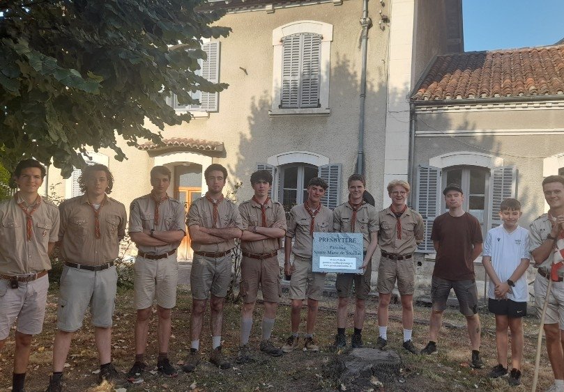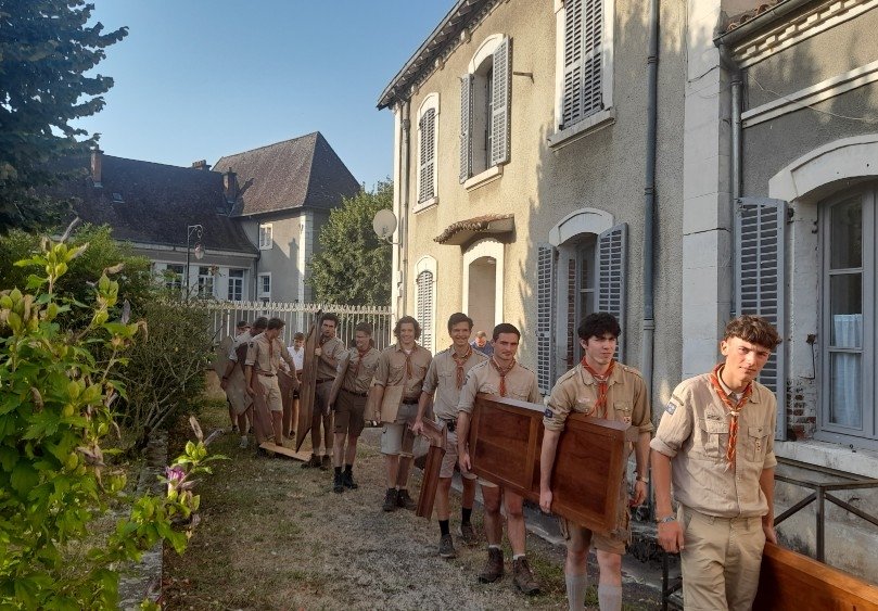 Cet important déplacement de mobiliers, de livres, de dossiers et d’effets divers a été réalisé grâce à la présence de dix Routiers du Clan Saint-Denis, venus de Montfort L’Amaury, en région parisienne, pour effectuer un service au profit de notre paroisse, dans le cadre de leur camp d’été.
