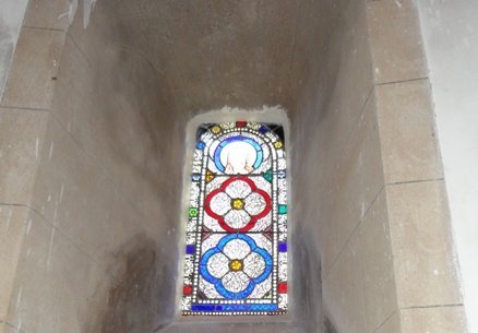 Par l’Association, les travaux de restauration effectués sur les vitraux ; restauration des vitraux du cœur et création de deux vitraux manquants.